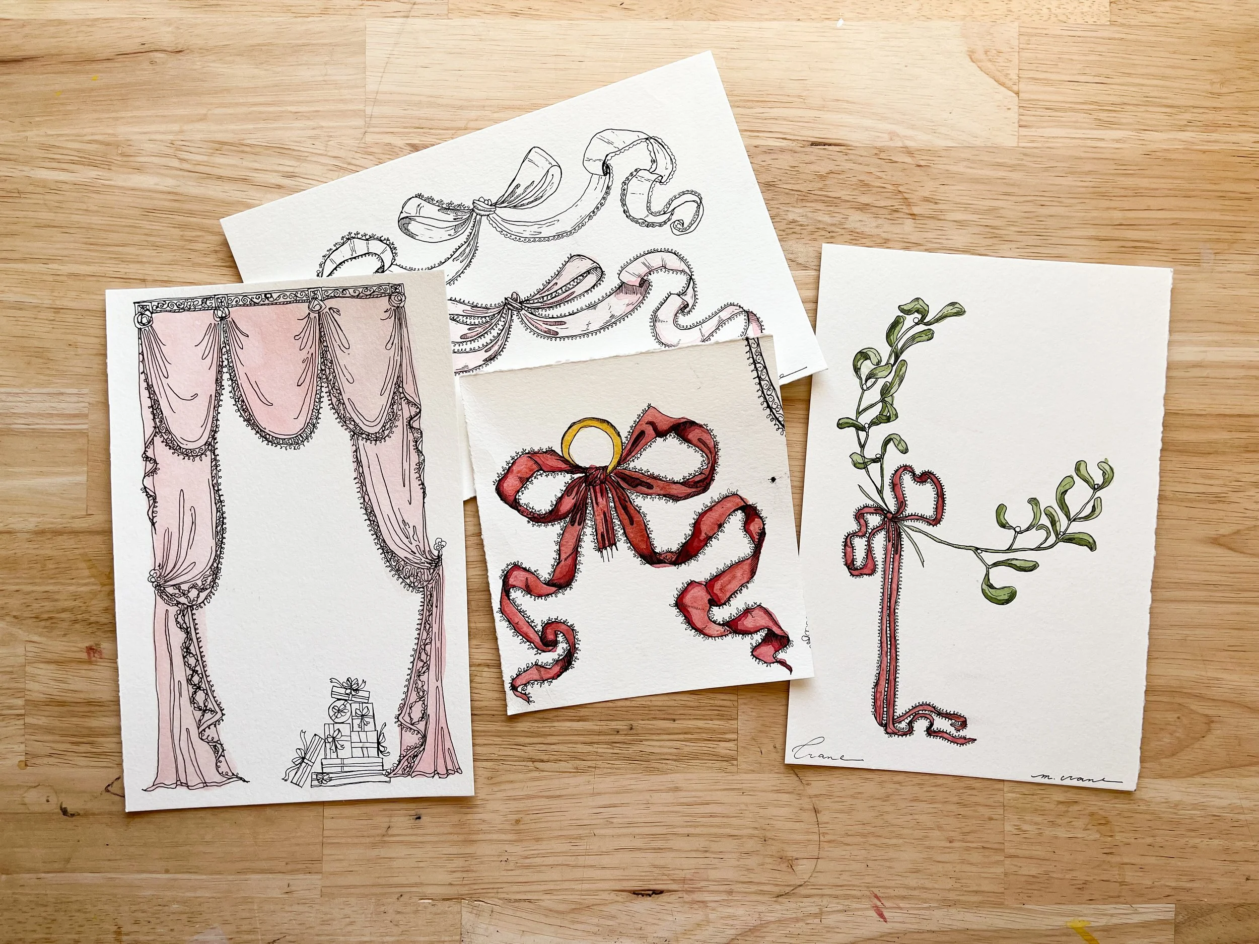 These placement pieces were designed by Megan from the micro-brief given by “A Fresh Bunch.” The promt wrote, “Think Christmas in a French Patisserie. Think Marie Antoinette is in charge of your holiday decor. Think pretty details married with Christmas elements.”